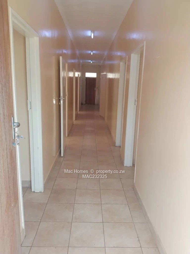 Commercial property for rent in Tynwald Industrial, Harare West — a secure, well-presented compound on 2,000 m² with 450 m² of built space, ideal for offices, clinic, training centre, light storage or mixed commercial use. As seen in the photos, the property features a high perimeter wall and solid gate with a paved driveway leading into a large gravel/grass parking and turning area. The main single-storey office block presents a welcoming veranda, tiled floors, bright windows and a central corridor flanked by multiple private rooms and offices — practical layouts for reception, consultation or administration. There is also a separate garage/warehouse/outbuilding suitable for storage or workshop use. The mature grounds include a neat lawn and landscaped strip with palm, offering pleasant curb appeal and space for expansion. A reliable borehole ensures uninterrupted water supply, a key operational advantage in Harare West. Well-maintained and immediately usable, this property offers secure on-site parking, flexible internal space and convenient access within the Tynwald neighbourhood — a strong option for businesses seeking a ready-to-occupy commercial base.