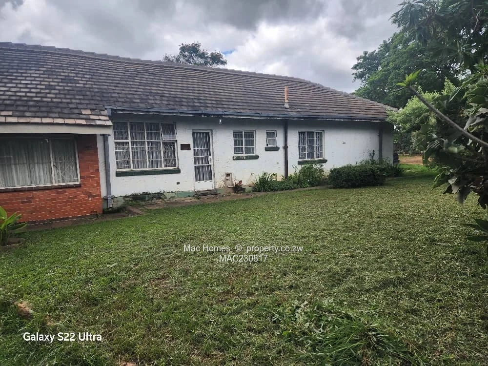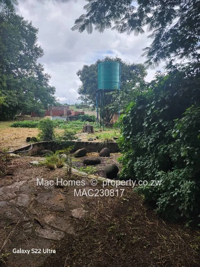 single-storey family home on a generous 6,900 m² stand in Waterfalls, Harare South. This solid 350 m² home offers 3 bedrooms and 1 separate bathroom and toilet, main lounge, dining room , sun lounge, big kitchen, pantry, scullery, well-shaded grounds with mature trees and widegardening or future extensions. The photos show a peaceful, private garden, a raised water tank on stand fed by a borehole (reliable on-site water supply), a long driveway from the gated entrance and original tiled roof and classic brick/white exterior that retain character and scope for renovation. Ideal for commercial or develop cluster homes: there’s room to add outbuildings, a granny flat or subdivide , Title Deed Available . Quiet neighbourhood, easy access to main roads and local amenities in Harare South. A rare opportunity to secure large landholding in Waterfalls — viewings by appointment.