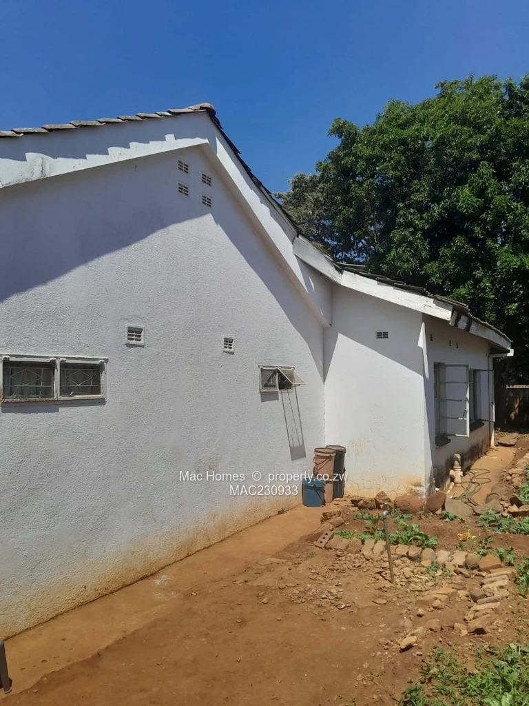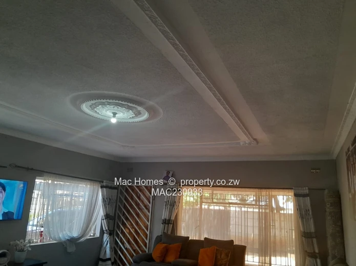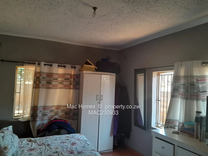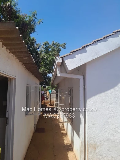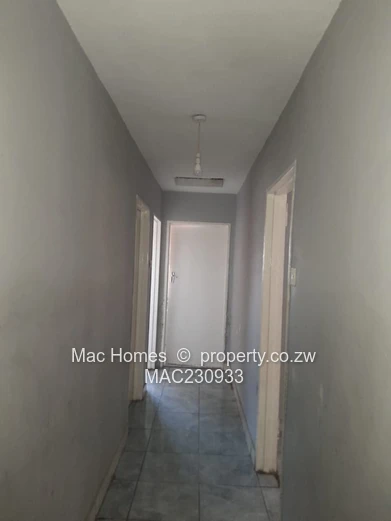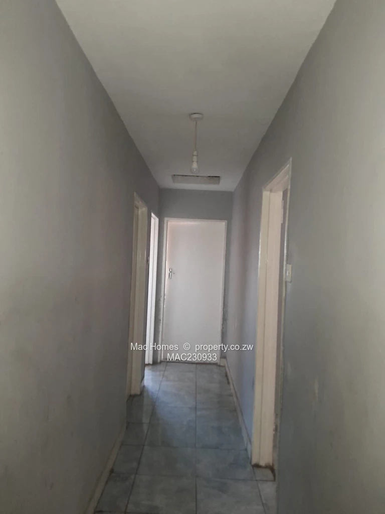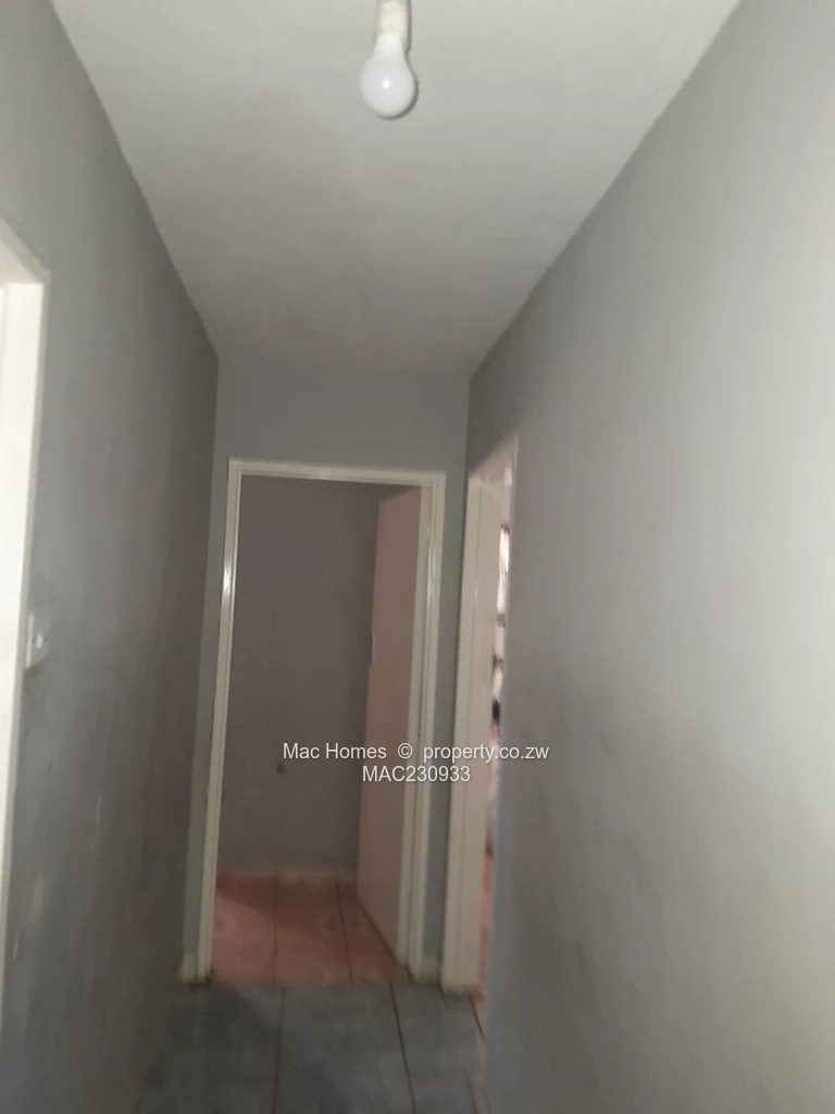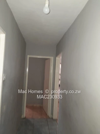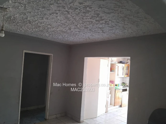 Spacious 4-bedroom, 2-bathroom family home in New Marlborough, Harare West — standing on a 600 m² plot. The property offers a large, airy lounge with decorative ceiling detail and wide windows that flood the room with light, tiled floors through the main traffic areas and a practical kitchen with fitted cupboards visible from the living area. Bedrooms are comfortable in size with curtain-fitted windows and secure burglar bars; the hallway and circulation spaces are fully tiled for easy maintenance. The main bathroom features a bathtub and tiled splashback while fittings throughout are functional and ready for simple cosmetic updating. Outside the home there is a manageable garden area ideal for vegetables or further landscaping, and the stand benefits from its own borehole — a major asset for uninterrupted water supply. The exterior shows a solid structure with tiled roof; the interior presents an excellent opportunity for renovation or immediate occupancy by a growing family. Excellent value for investors or homeowners who want a well-located, solid house with room to personalise. Contact us to arrange a viewing and see the potential up close. Walled and gated plus 2 roomed cottage, Deeds 160k usd