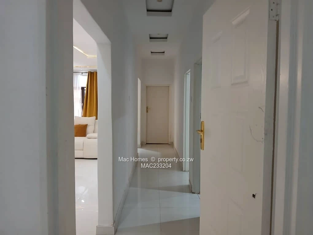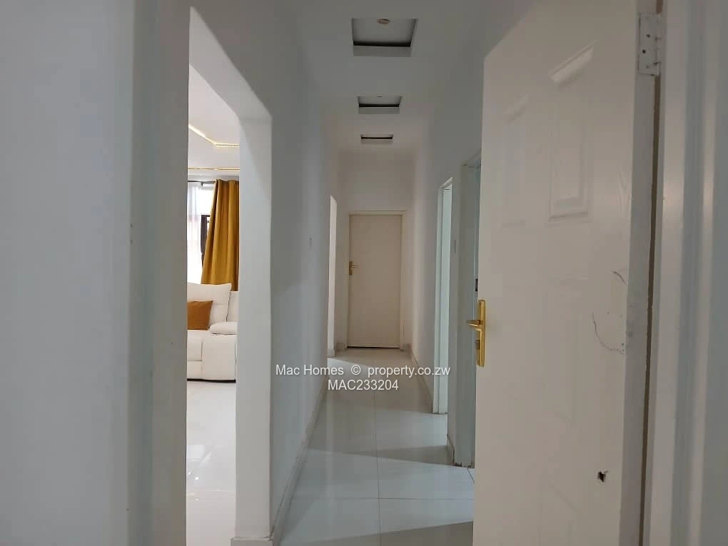 Stunning 4-bedroom,main bedroom ensuite, 3-bathroom family home for sale in Crowhill Views, Harare North — set on a generous 1,200 m² stand with 400 m² of living space. This secure, modern single-storey home features a gated paved driveway and a double garage with roller doors. The roof is fitted with solar panels and a solar water heater, and the property benefits from its own borehole and elevated water tank for reliable water supply.