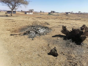 A dirt road provides convenient access, ensuring easy entry to and from the stand. The boundaries are marked by rustic brick walls and wooden structures, indicating defined property lines and the potential for additional development.