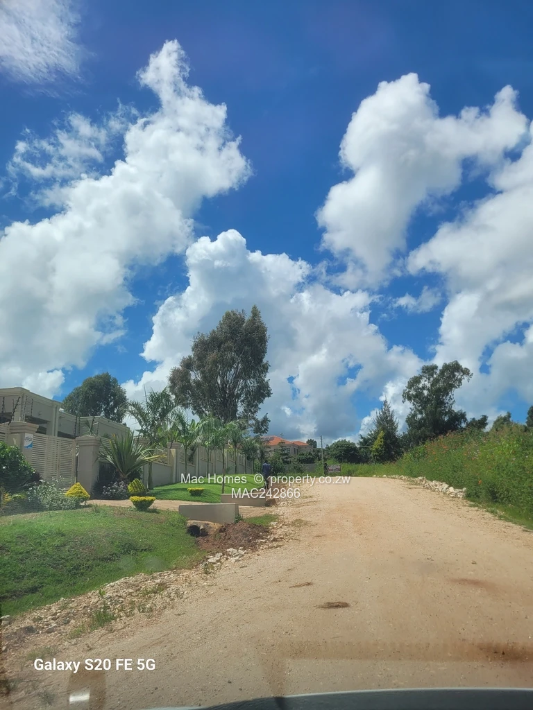 Prime 2,400 m² residential stand in coveted Hogerty Hill, Harare North — an exceptional opportunity with strong subdivision potential. Set along a well-maintained gravel road, the property offers easy vehicular access and a peaceful streetscape: mature boundary walls and manicured gardens line one side while open green fields and a patch of maize on the other preserve privacy and country charm. The gently rising terrain and expansive, cloud-studded skies captured in the photos promise elevated views and excellent natural light. Ideal for a luxury family estate, a multi-unit development, or to subdivide into smaller stands (subject to council approval). Quiet neighbourhood, secure feel, and convenient access to northern suburb amenities. Viewings by appointment — secure this rare Hogerty Hill parcel today.